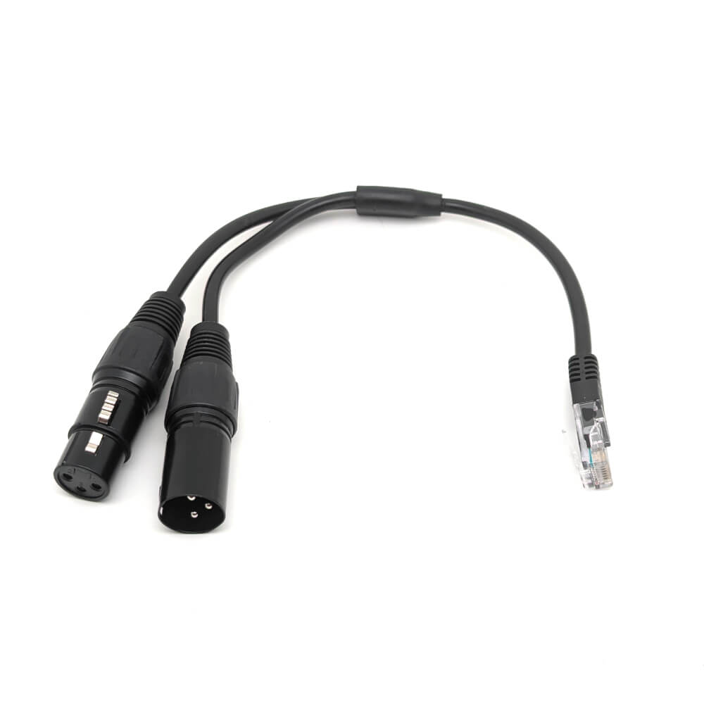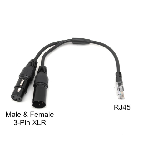 This easy to use adapter converts the RJ45 DMX port on the Octo into male and female 3-pin XLR connections for use in a DMX network.