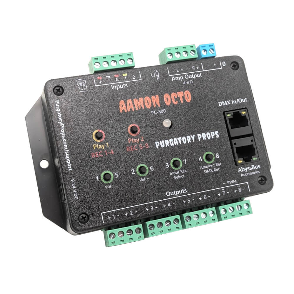 Eight programmable outputs, internal 60W amplifier, 20 DMX channels, two isolated inputs, and our bonus Output 0 make the Aamon Octo the best bang for your buck controller on the market!